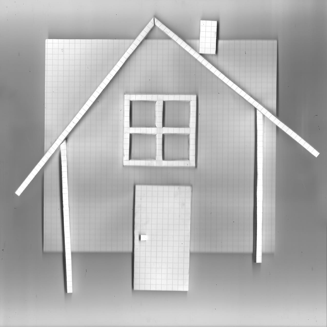 At its most basic, it asks only 5 lines: 2 for the roof, 2 for the walls and 1 for the foundation. You might even be able to get away with 4, if you can accept a bottomless house. From there, infinite complexity and detail can be added; but no more is needed for it to be recognizable.